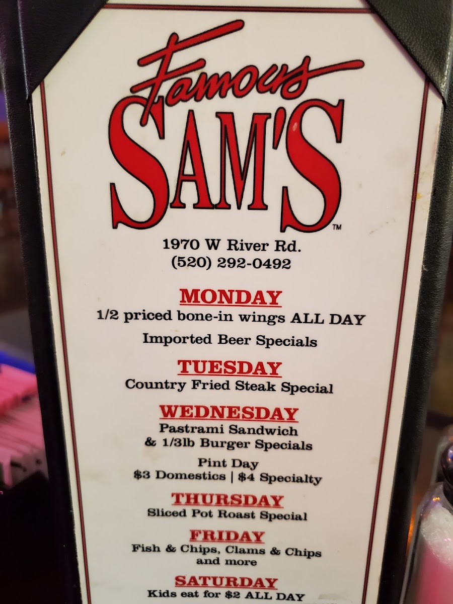 Welcome to Famous Sam's, an iconic establishment nestled at 1970 W River Rd, Tucson, AZ. This cherished neighborhood bar has been delighting locals with its vibrant atmosphere and hearty meals, making it a defining spot in Tucson's dining landscape.